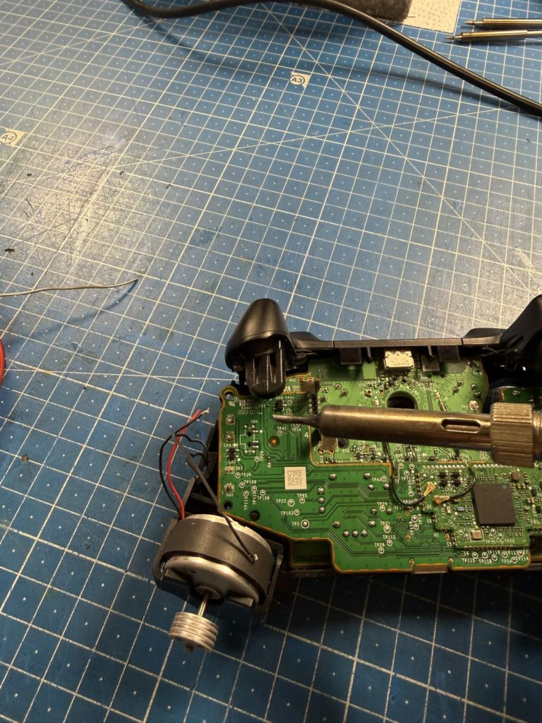 Wenn man beide Sticks getauscht hat, kann man den Controller provisorisch zusdammenstecken und auf der Seite https://hardwaretester.com/gamepad auf Funktion testen. Dort erkennt man auch direkt ob alles funktioniert. Ist das der Fall kann man die zuvor entfernten Leitungen der Motoren wieder anlöten.
