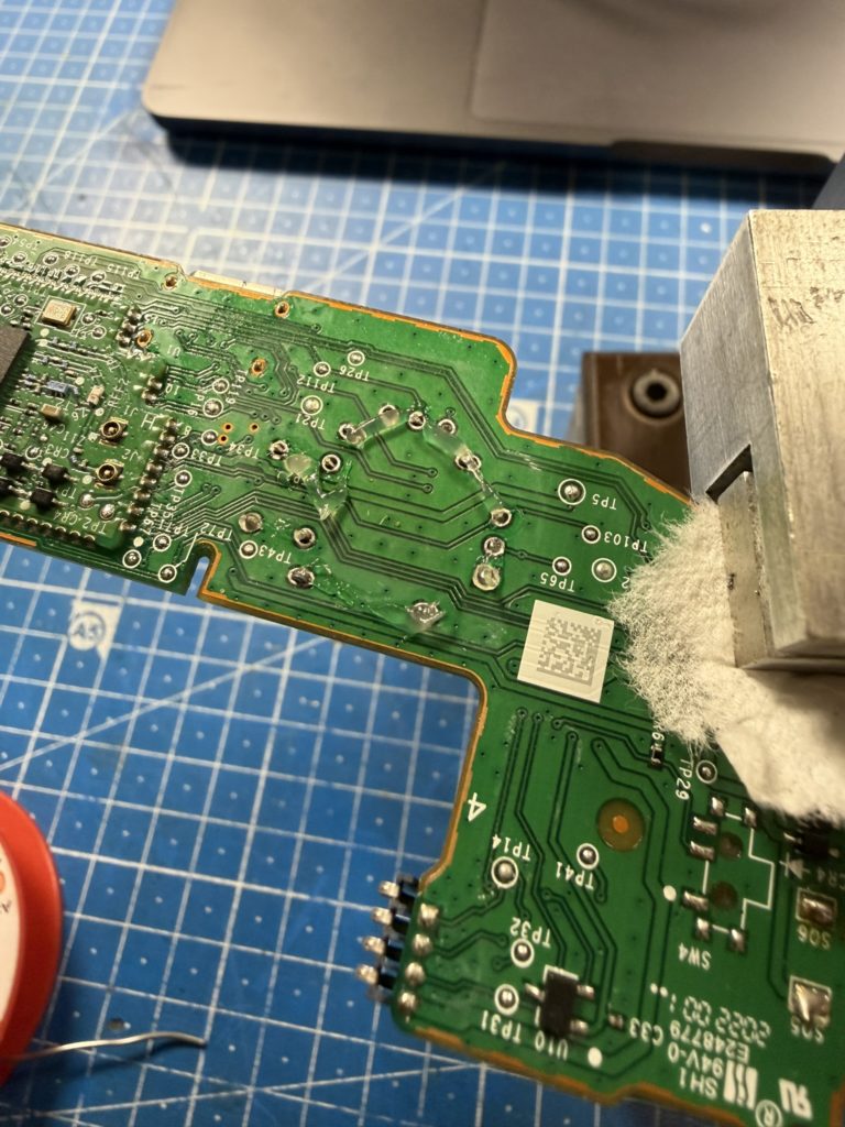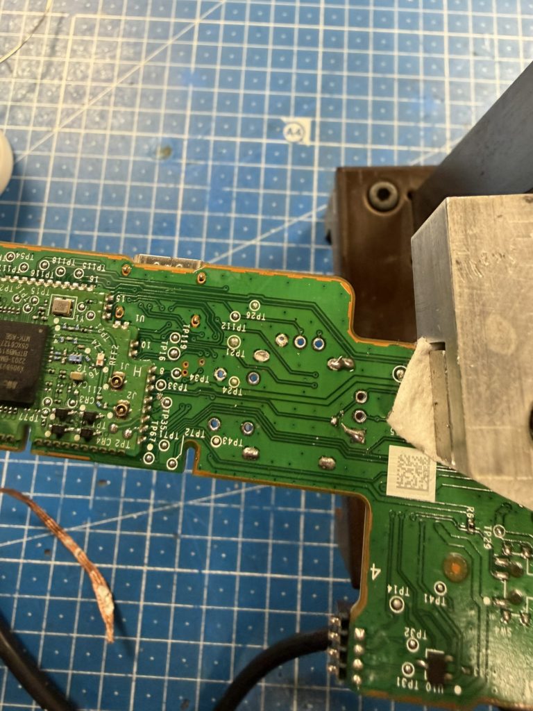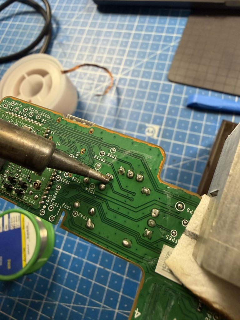 Mit „Low-Melt-„Lötzinn kann man den Schmelzpunkt des Original-Lötzinns etwas herunterbekommen, trotzdem dauert es eine gefühlte Ewigkeit bis man einen Stick entfernt hat. Dann müssen aber die Löcher für die Kontakte noch von Lötzinn befreit werden um die neuen Sticks sauber auf die Platine setzen zu können.